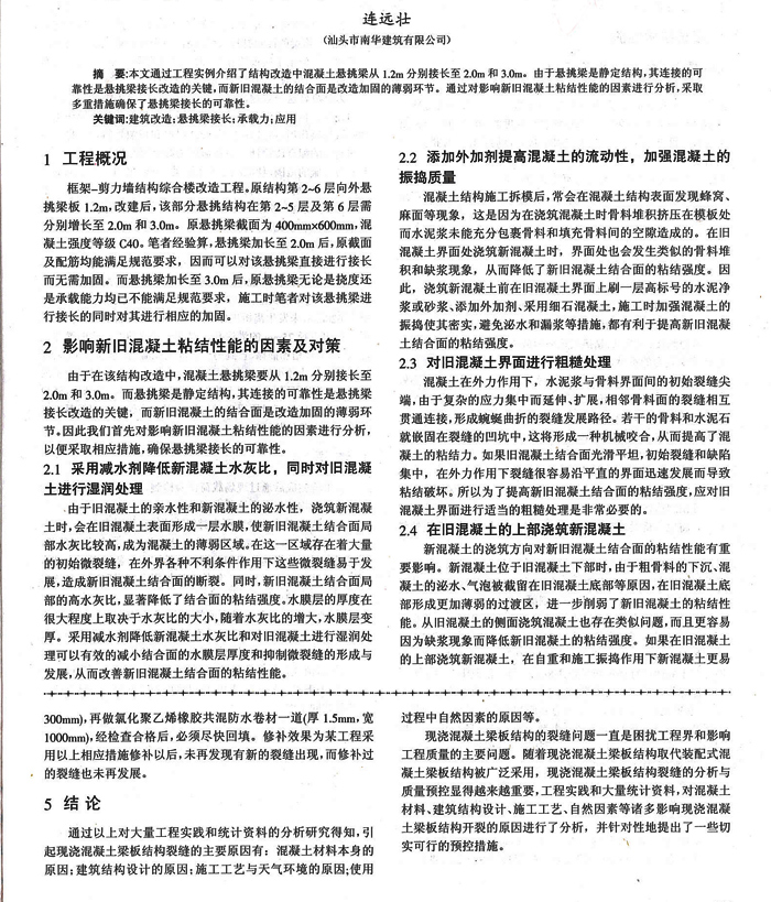 論懸挑梁接長(zhǎng)在建筑混凝土中的應(yīng)用(連遠(yuǎn)壯)