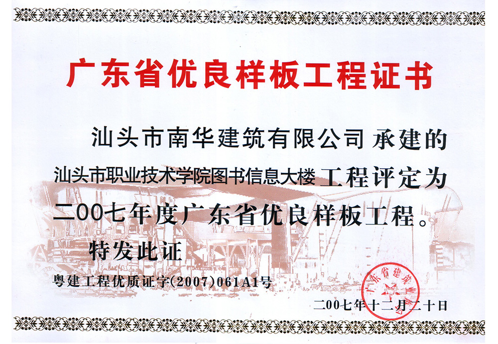 工程樣板證書