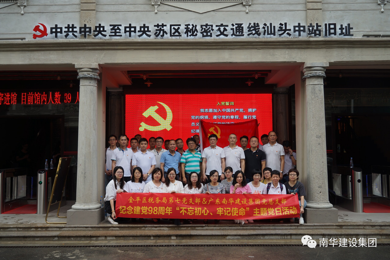 6月28日,廣東南華建設(shè)集團(tuán)有限公司與金平區(qū)稅務(wù)局第七黨支部組織黨員到位于小公園街區(qū)的“中共中央至中央蘇區(qū)秘密交通線汕頭中站”舊址進(jìn)行參觀。從1930年底建立,到1934年紅軍長征前完成歷史使命,經(jīng)汕頭的這條紅色交通線,是上海黨中央與位于贛閩腹地的中央蘇區(qū)之間唯一一條未遭敵人破壞、始終連通的地下交通線。經(jīng)汕頭北上進(jìn)入中央蘇區(qū),主要行經(jīng)的就是東江地區(qū)(在土地革命戰(zhàn)爭時(shí)期,包括今日東江、韓江流域的絕大部分地區(qū))。在中共建黨和大革命時(shí)期,這里農(nóng)民運(yùn)動(dòng)蓬勃,國民革命軍又曾兩次東征,這里成為全國農(nóng)民運(yùn)動(dòng)的典范、中國大革命的策源地。