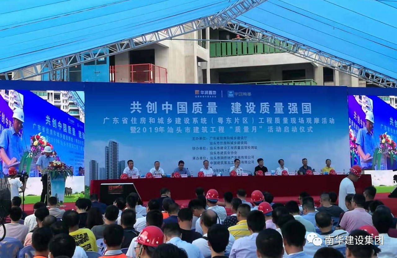 根據(jù) 《廣東省住房和城鄉(xiāng)建設廳關于組織開展2019年“質(zhì)量月”系列活動的通知》、汕頭市住建局《汕頭市住建局關于舉辦2019年汕頭市建筑施工“質(zhì)量月”現(xiàn)場觀摩活動的通知 汕住建質(zhì)通〔2019〕8號》的通知,為提升各項工程質(zhì)量安全生產(chǎn)水平,我集團公司派相關人員參加市住建局組織召開2019年9月5日汕頭市建筑在“汕頭九里怡園二期項目”(全省住房城鄉(xiāng)建設系統(tǒng)“質(zhì)量月”粵東片區(qū)工程質(zhì)量現(xiàn)場觀摩項目)建筑工地組織召開2019年汕頭市建筑施工“質(zhì)量月”活動啟動儀式暨現(xiàn)場觀摩會。