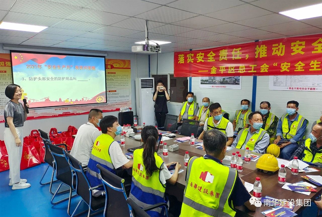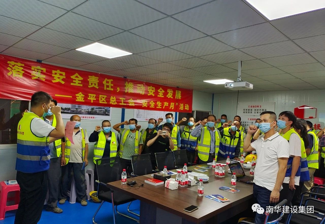 2021年6月是第20個全國“安全生產(chǎn)月”,集團公司深入學(xué)習貫徹習近平總書記關(guān)于安全生產(chǎn)重要論述,貫徹落實黨中央、國務(wù)院關(guān)于安全生產(chǎn)重大決策部署,樹牢安全發(fā)展理念,強化全員安全生產(chǎn)宣傳教育培訓(xùn)工作,增強安全生產(chǎn)意識,提升安全文明素質(zhì),堅決防范安全生產(chǎn)事故發(fā)生。6月16日,金平區(qū)總工會以“落實安全責任,推動安全發(fā)展”為主題,在集團公司潮金大廈項目部開展2021年“安全生產(chǎn)月”活動,區(qū)工會、集團公司工會及項目部管理人員、工人代表等參加活動。