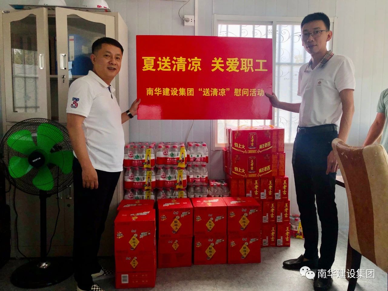 隨著氣溫不斷升高,在炎炎的酷暑下,驕陽似火的夏日中,為保障現(xiàn)場操作工人身體健康,確保安全生產(chǎn),集團公司堅持以人為本理念,認真把一線員工的防暑降溫工作做到實處,為讓奮戰(zhàn)在工地一線的施工作業(yè)人員過一個清涼的夏天,近日,集團公司工會組織開展“建筑工地送清涼”活動,向在建工程項目的施工作業(yè)人員送上涼茶等防暑降溫物品,給在夏日里仍堅守崗位的建設(shè)者送上絲絲涼意和關(guān)懷。