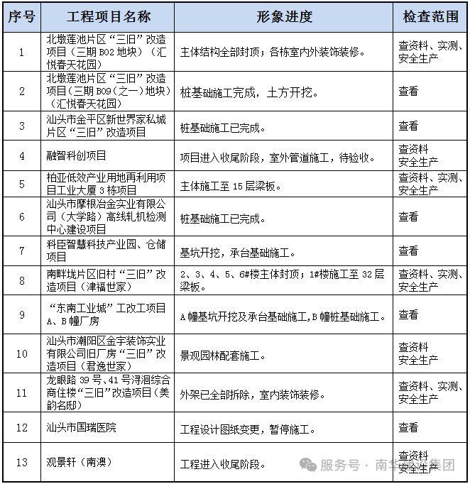 根據(jù)《汕頭市住房和城鄉(xiāng)建設(shè)局關(guān)于開展歲末年初住建領(lǐng)域安全生產(chǎn)工作督導(dǎo)檢查的通知》的要求,深入貫徹落實習(xí)近平總書記關(guān)于安全生產(chǎn)的重要指示精神,牢固樹立“紅線”意識、“底線”思維和“首位”要求,認(rèn)真落實省委省政府、市委市政府關(guān)于安全生產(chǎn)工作各項部署,針對歲末年初行業(yè)安全防范規(guī)律和特點,督促各在建項目落實落細(xì)安全生產(chǎn)工作措施,堅決遏制各類安全生產(chǎn)事故的發(fā)生,確保歲末年初安全生產(chǎn)形勢穩(wěn)定。
