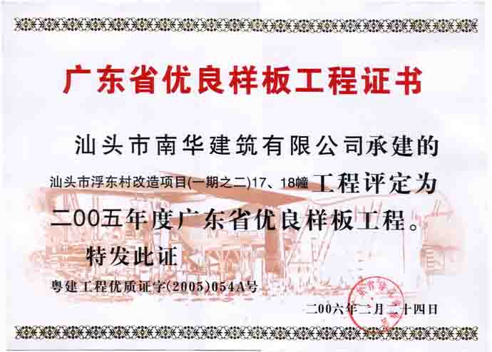 工程樣板證書(shū)