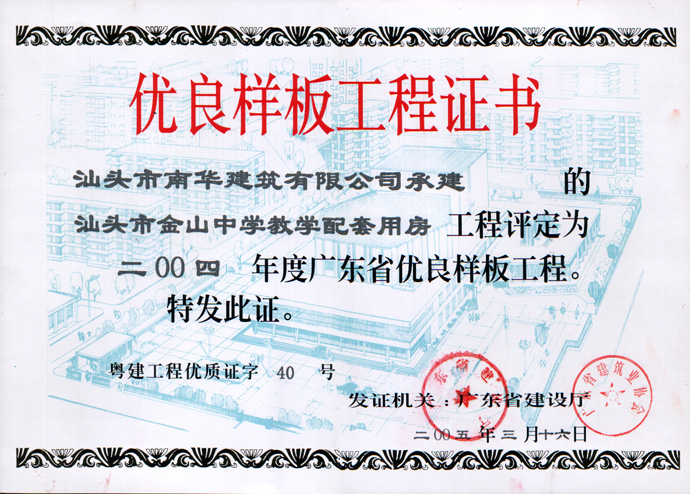 下蓬中學(xué)擴(kuò)建教學(xué)樓省樣板證書(shū)